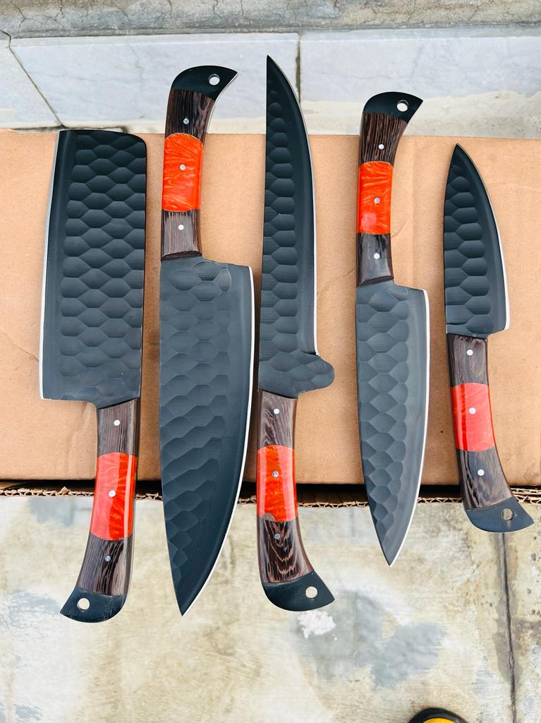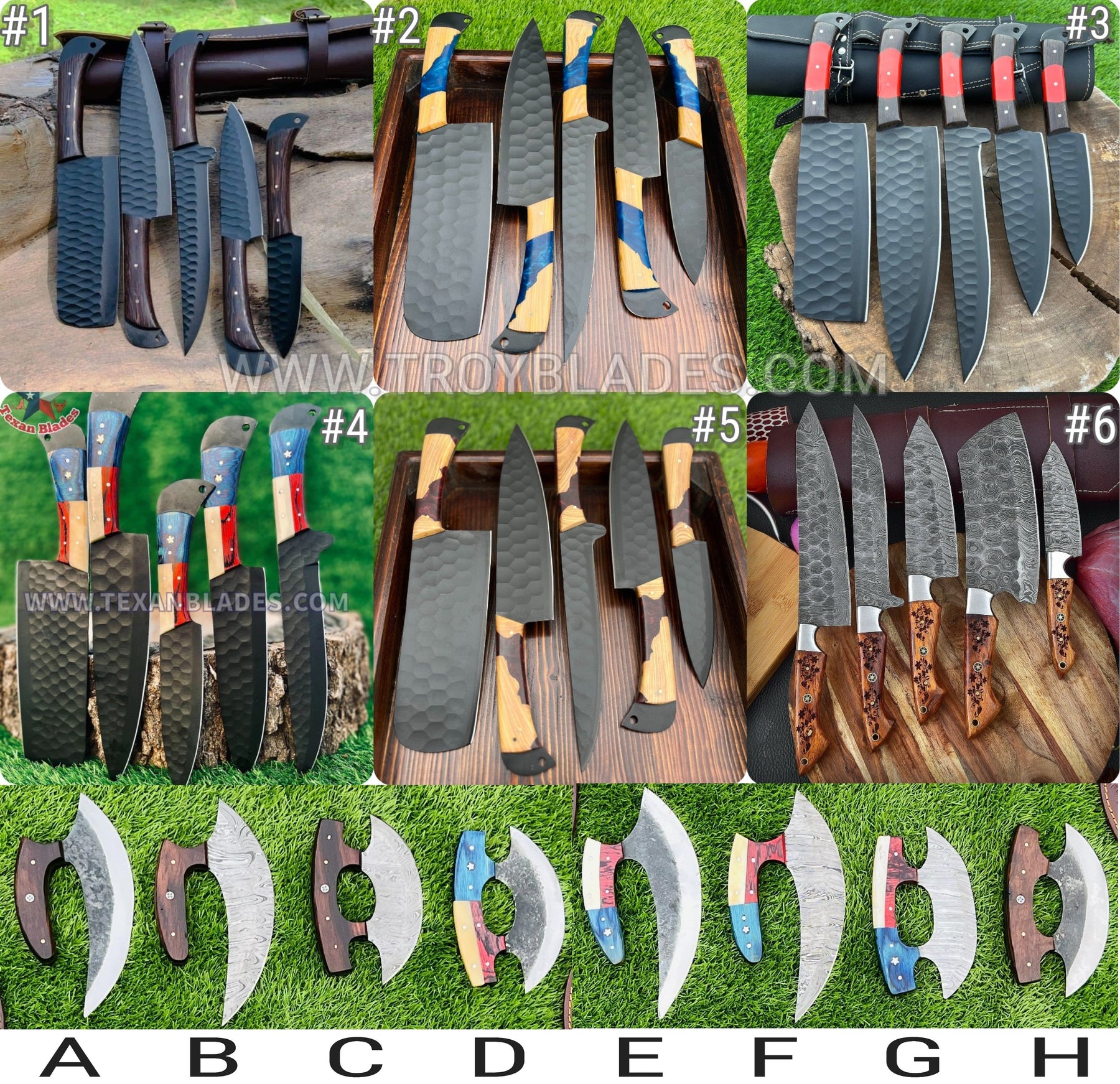 Blade length: 8" Chef, 6" Chef, 8" Carver, 6.5" Cleaver, 4" Paring