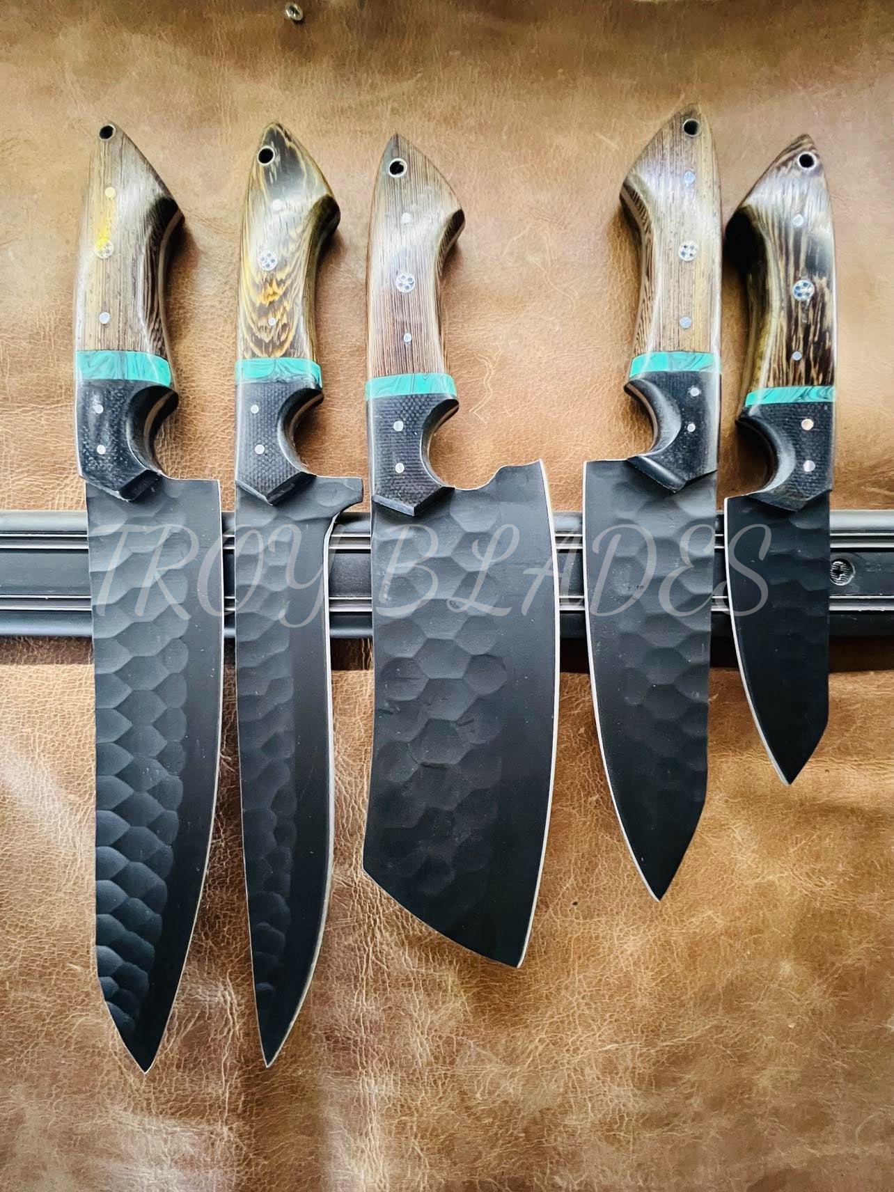 Blade length: 8" Chef, 6" Chef, 8" Carver, 6.5" Cleaver, 4" Paring