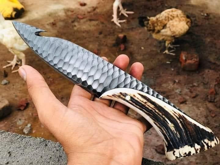 10.5 inches overall with leather sheathe. Up to 58 HRC.