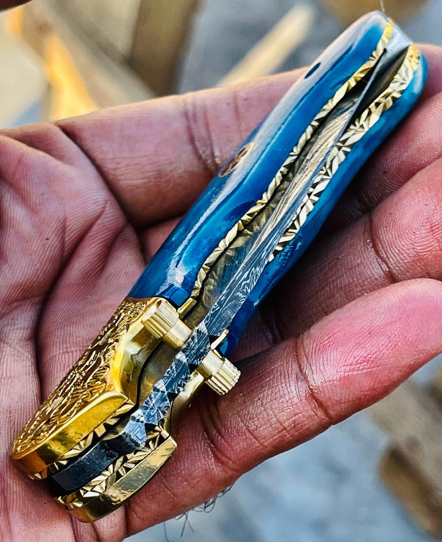 Christmas Gift Beautiful Custom Handmade Damascus Folding knife on Discount