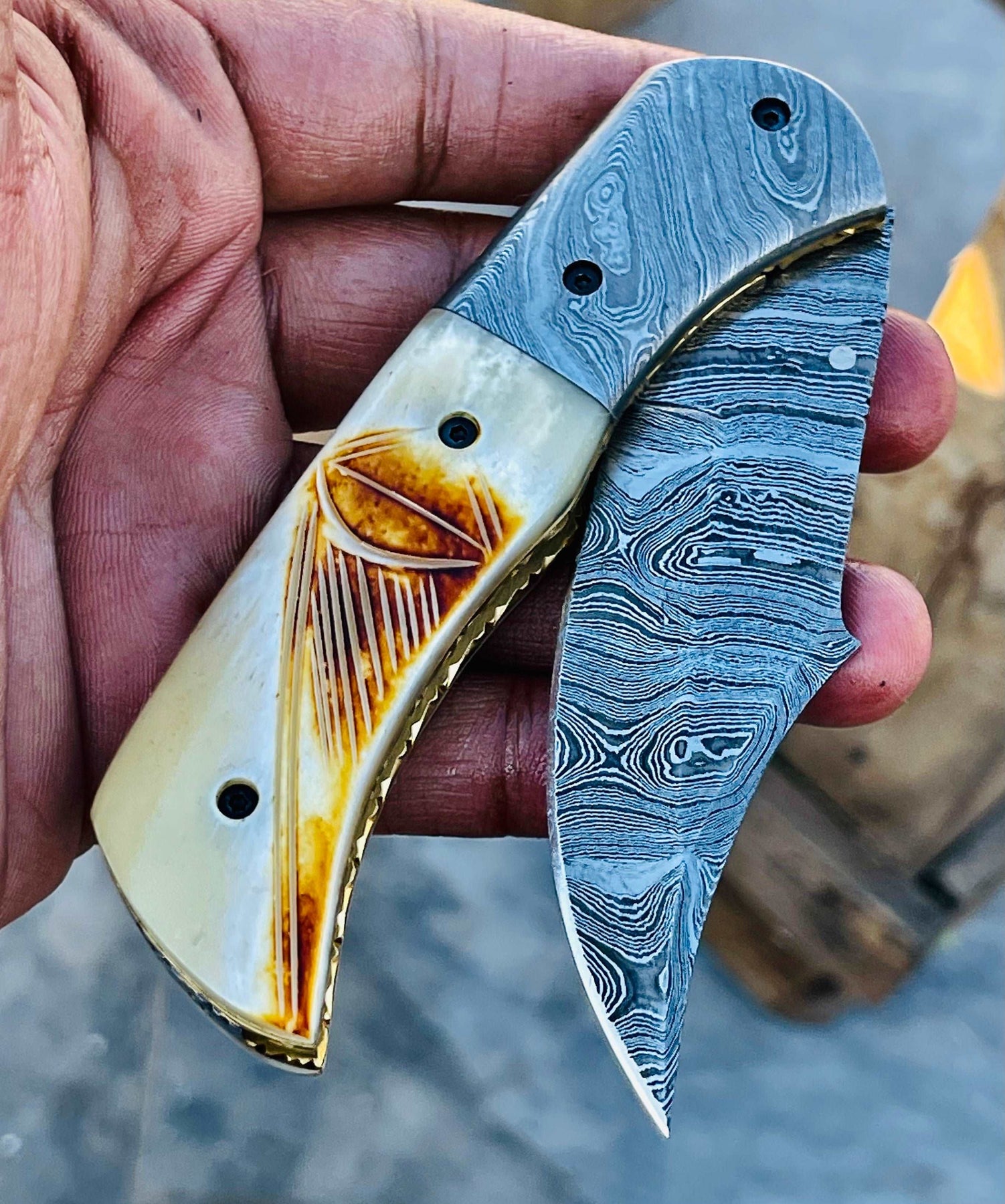 Christmas Gift Beautiful Custom Handmade Damascus Folding knife on Discount