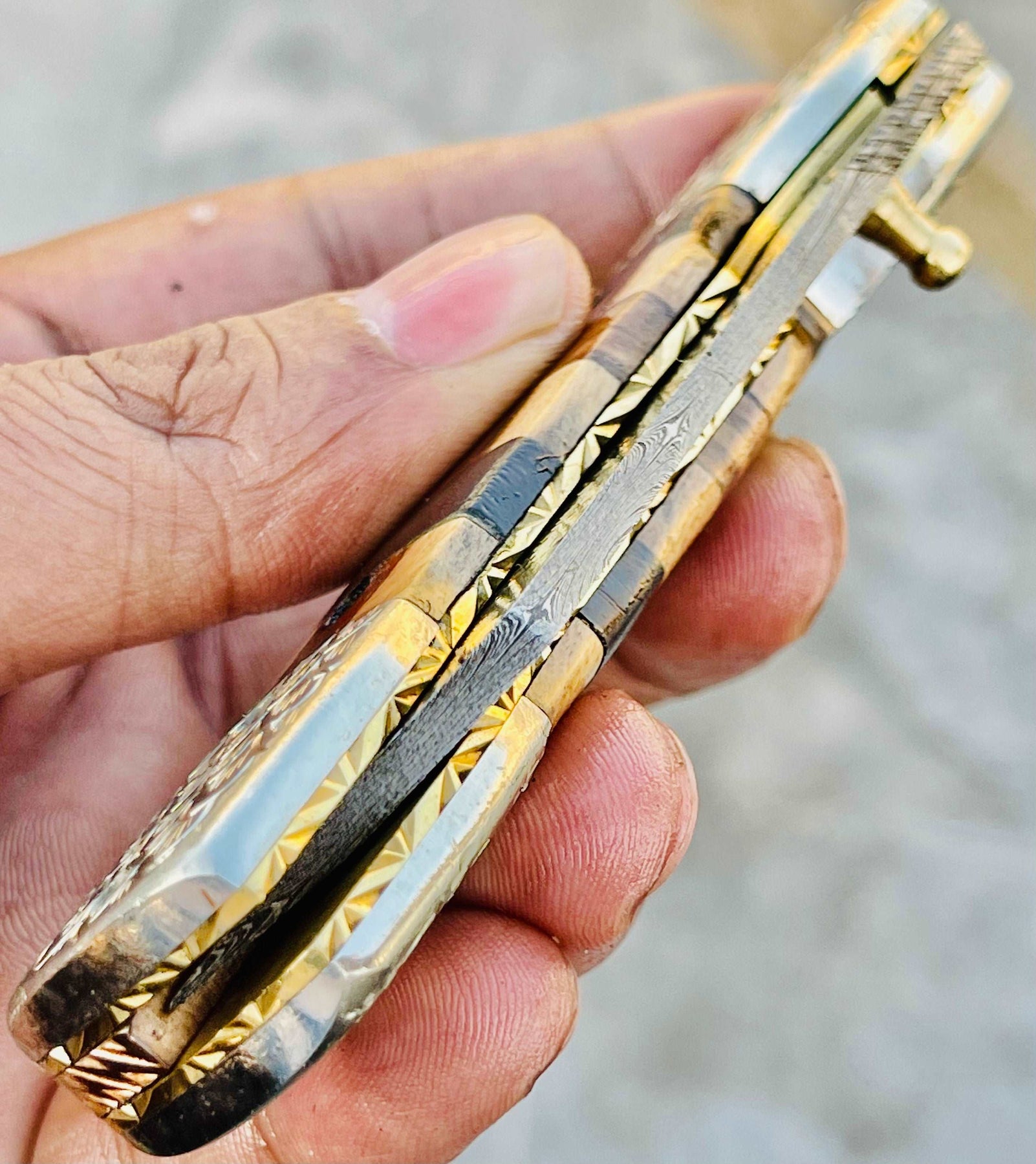 Christmas Gift Beautiful Custom Handmade Damascus Folding knife on Discount
