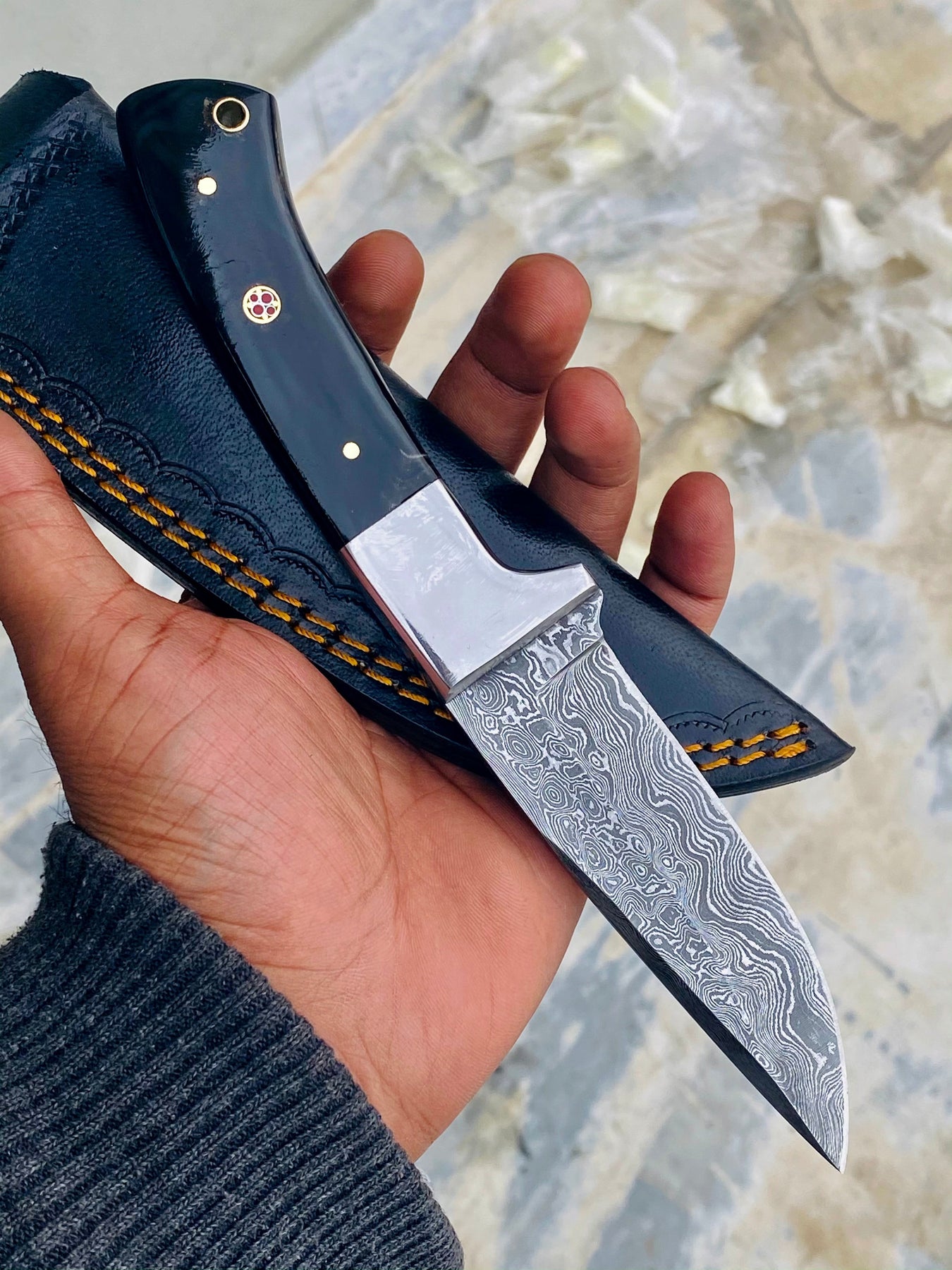 GIFT SERIES Custom Handmade Damascus Hunting skinning knife with Leather sheathe