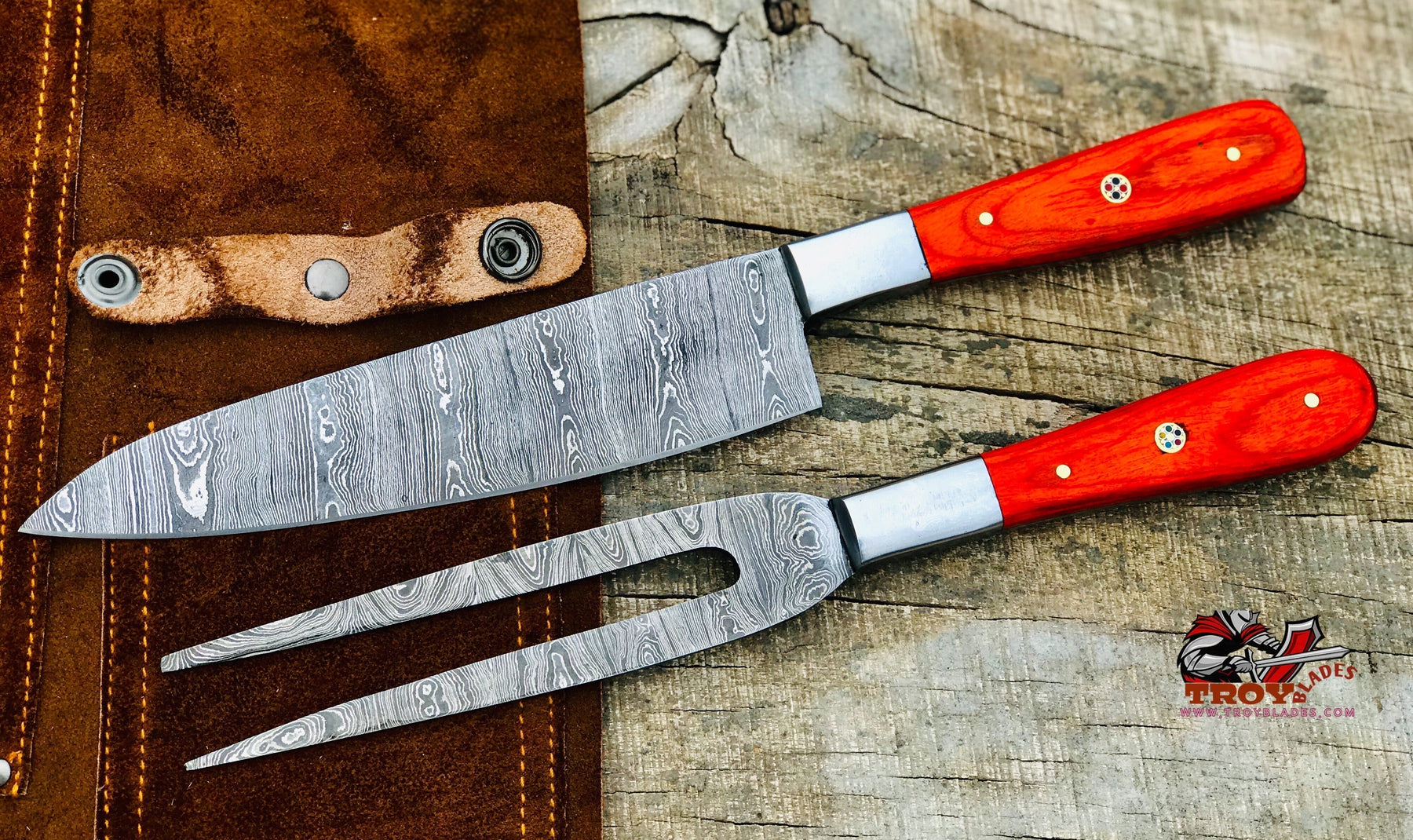 Custom Handmade Damascus Kitchen/BBQ Table Pair S001 - Troy Blades