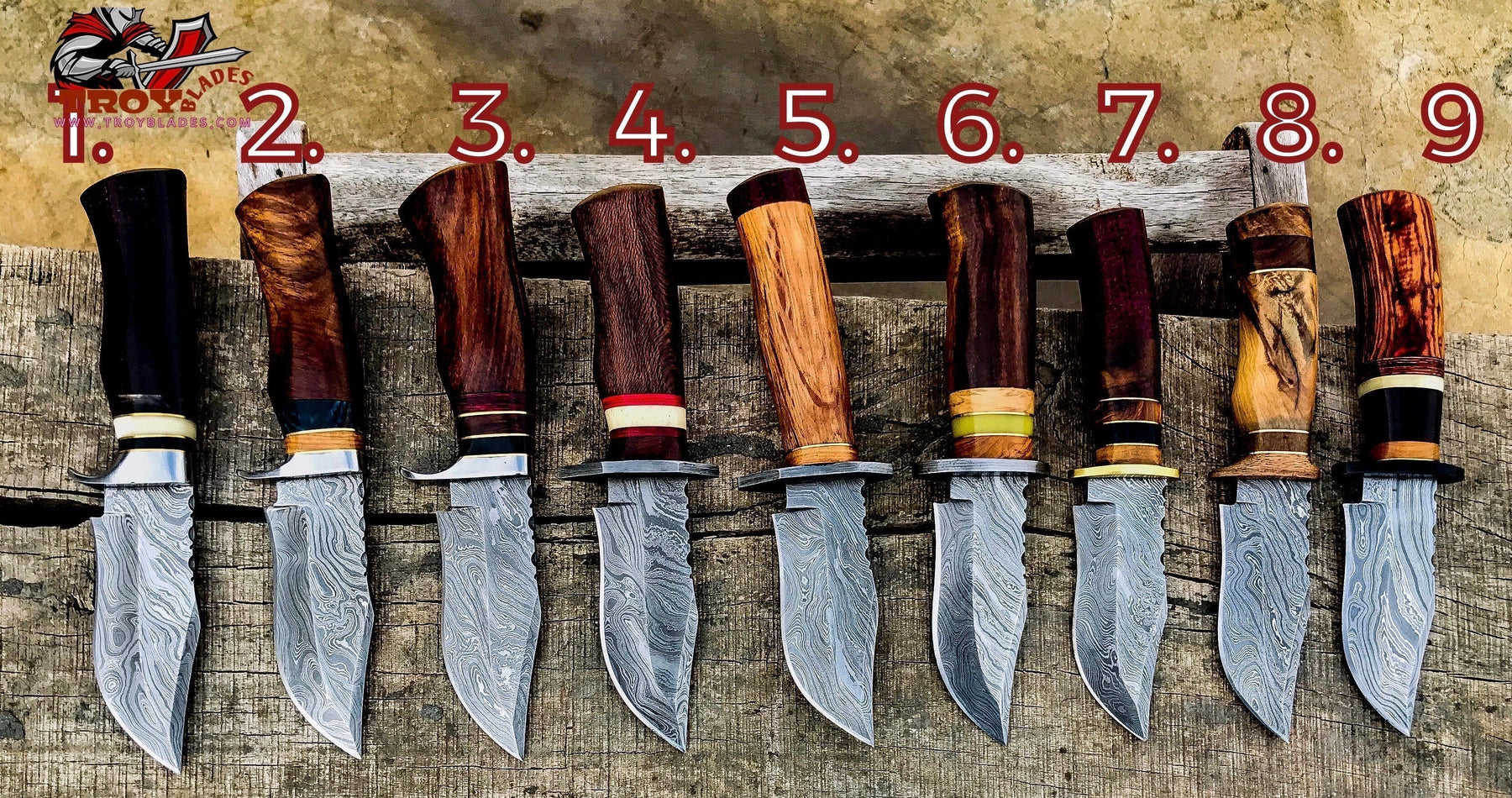 Pick your knife in Variations Custom Handmade Damascus Hunting knives - Troy Blades